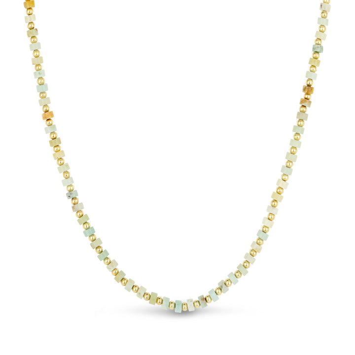 This Green Stone Beaded Necklace by Gold Trip brings a natural bohemian charm with its polished mix of green and neutral stones interspersed with golden beads. Designed for effortless layering, it embodies a relaxed, summery spirit that works year-round. A vibrant accessory that balances earthy tones with a refined golden touch.