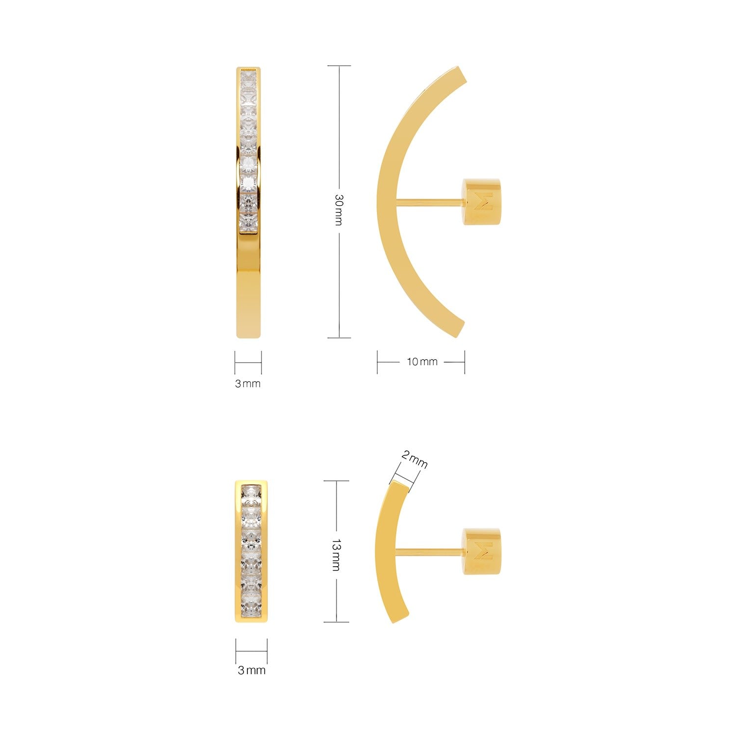 These mismatched earrings are crafted from 18k vermeil and feature black princess-cut cubic zirconia (CZ) stones. The set includes a long and a short slender rectangular arc.
