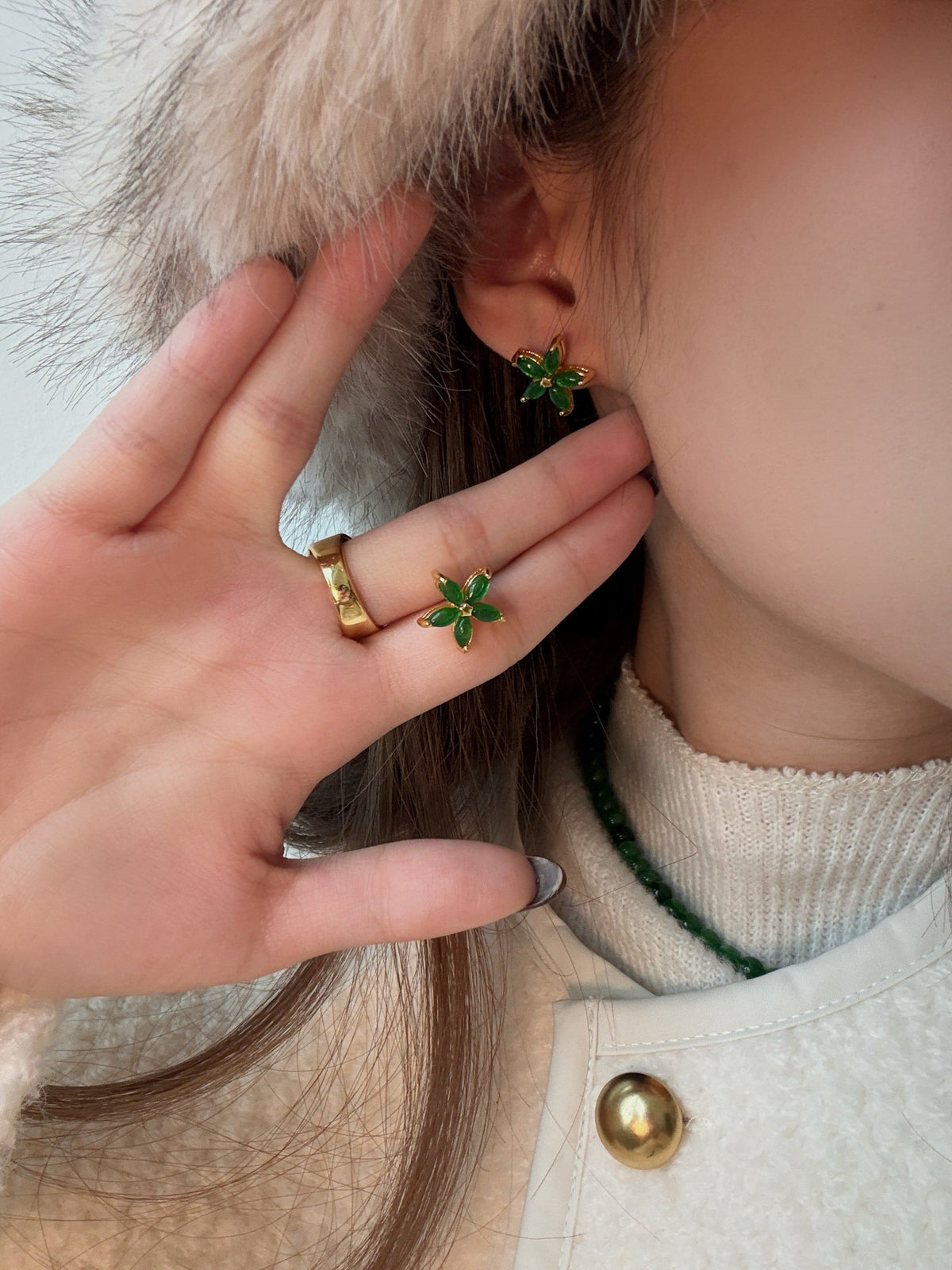 These Flora Green Jade Stud Earrings by Seree are a beautiful and delicate accessory that embodies nature's charm. The studs feature radiant nephrite jade petals, which are set in gold-plated sterling silver, creating a simple and sweet floral fantasy. These earrings are a charming and effortless addition to your everyday look. Their unique design and natural beauty are perfect for those who appreciate the delicate and sophisticated side of nature-inspired jewelry.