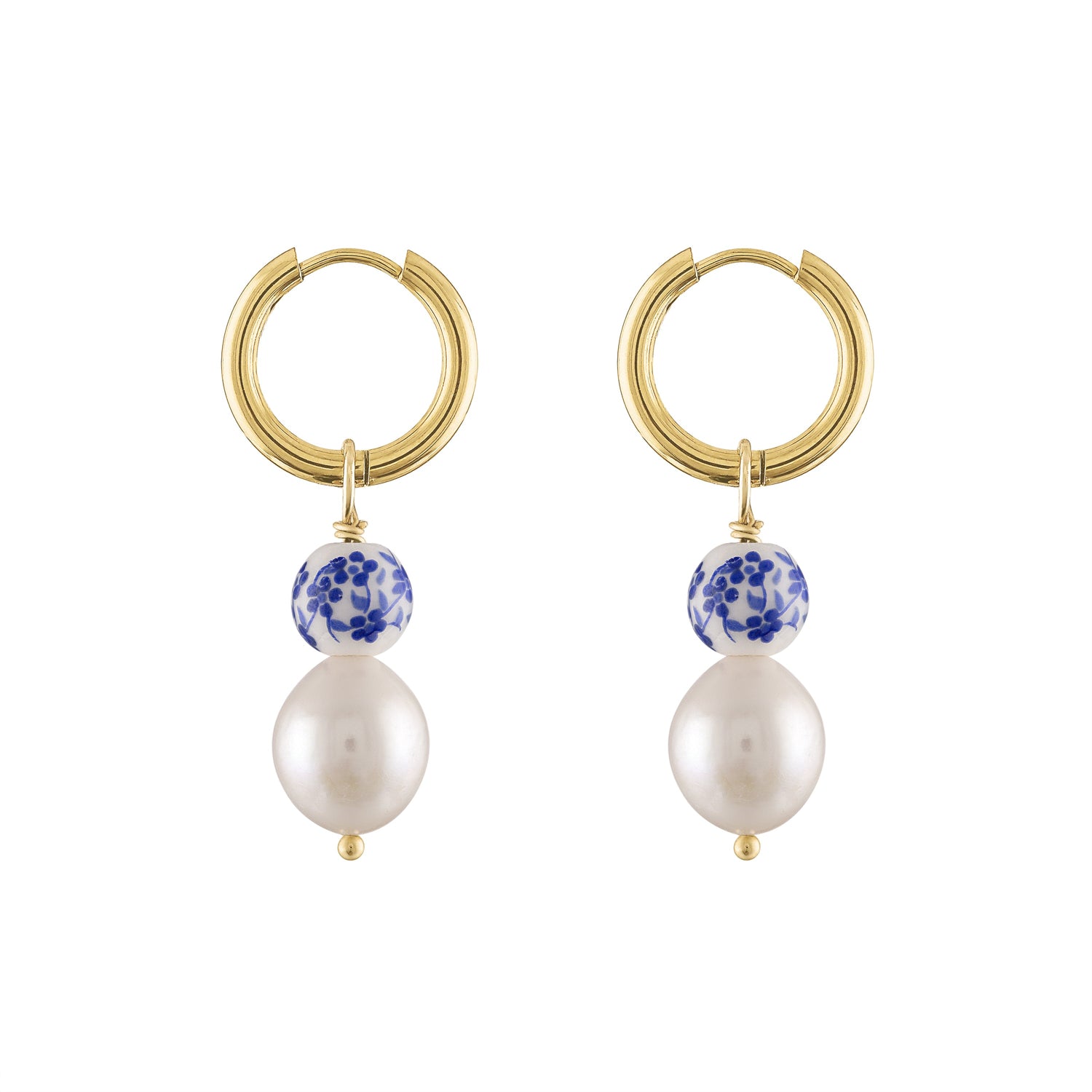 These hoop earrings are crafted from 18K gold-plated stainless steel. They are 12mm in size and feature removable freshwater pearl charms with a click closure. They are tarnish-resistant and hypoallergenic.