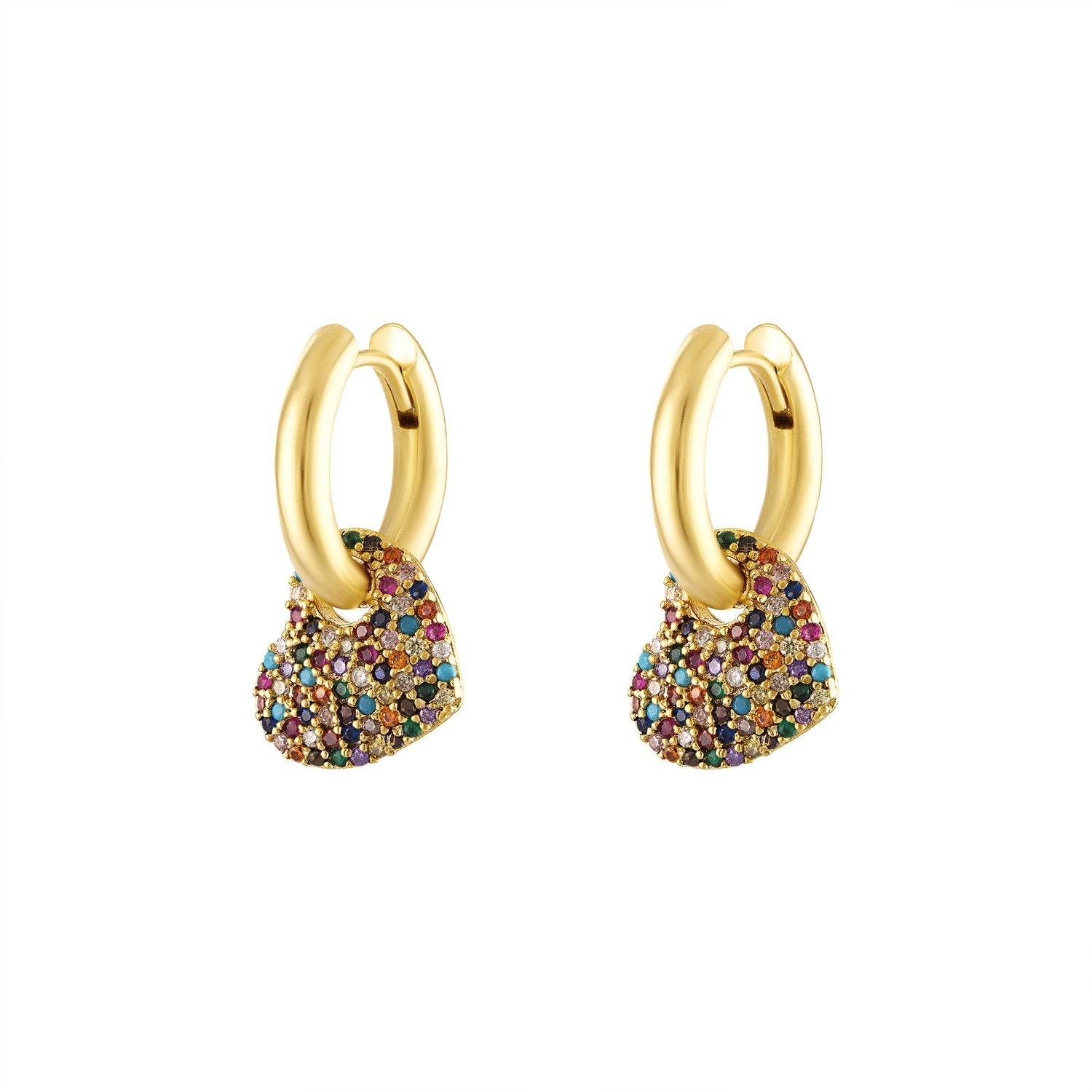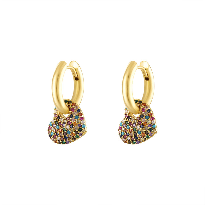 These hoop earrings are crafted with 24k gold plating and feature a removable rainbow charm. They have a click-back post for secure wear.