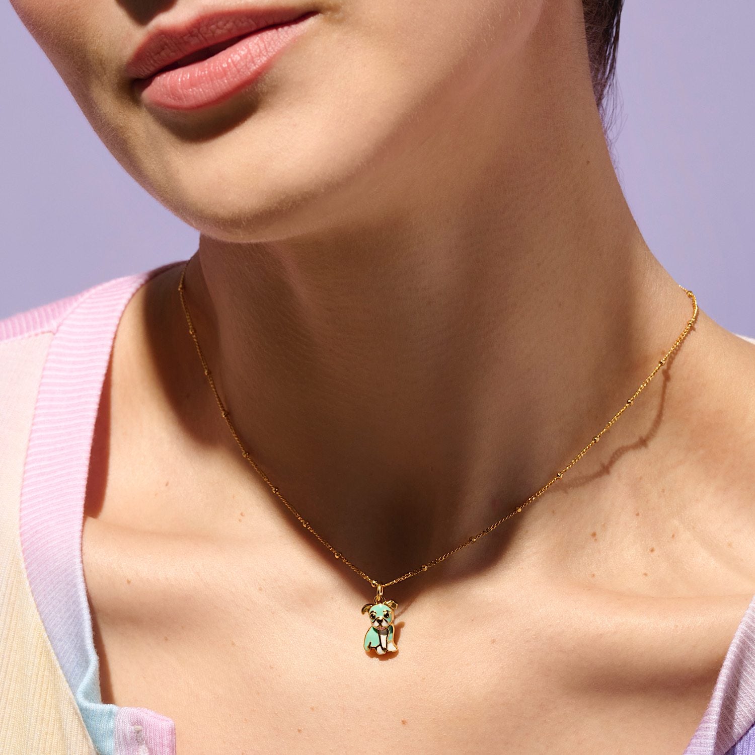 24k gold-plated pendant with enamel finish. 15-inch beaded chain with 3-inch extender. Lobster clasp closure with signature paw print tag.