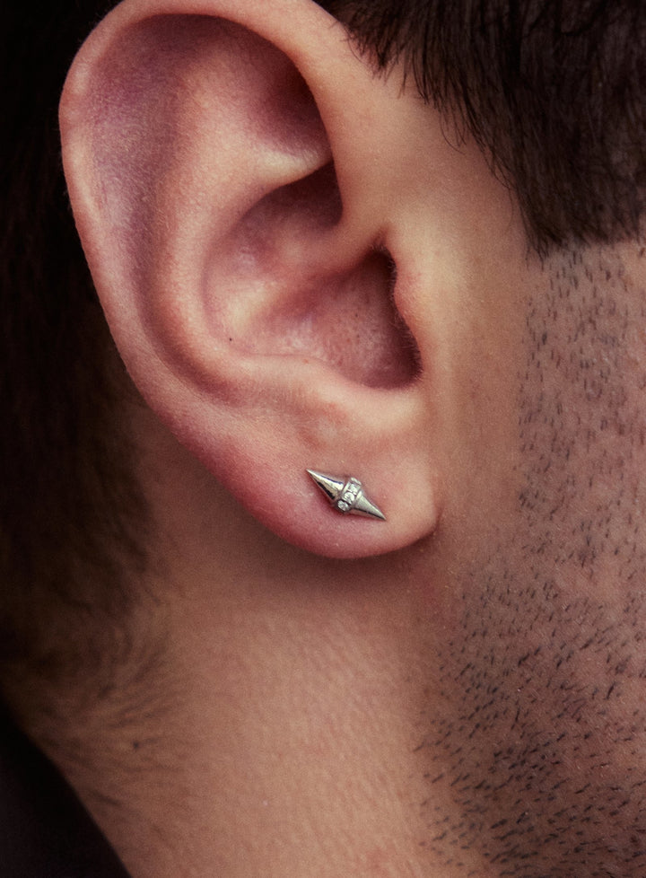 This Rocket Stud Earring Mono Silver by Mishka is a bold, contemporary piece that captures a sleek and adventurous spirit. Designed with a distinctive bicone shape, the single stud sparkles with carefully set crystals, creating an edgy yet refined look. Its unisex design makes it versatile and stylish, appealing to those who appreciate jewellery that breaks traditional boundaries. Minimal yet striking, this mono earring embodies Mishka’s ethos of precision, luxury, and responsibility.
