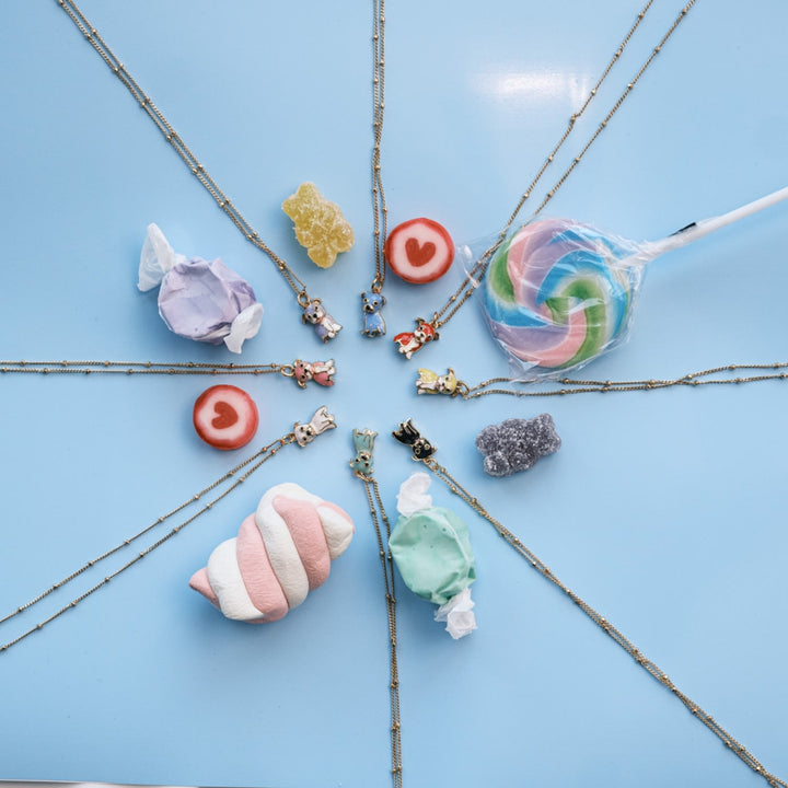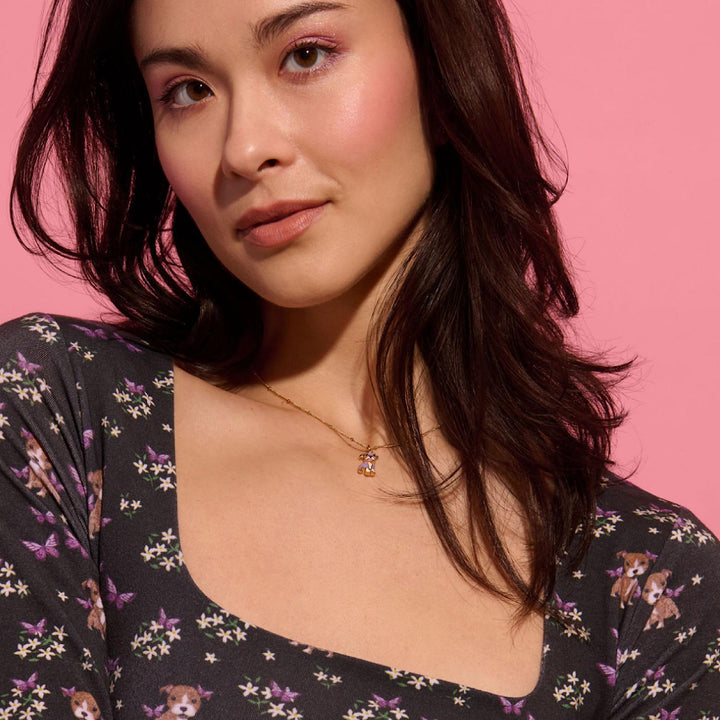 The Mini Bulldog Sweetie Pendant in Lollipop Purple by Cloud Haven is as sweet as candy and brimming with charm. Finished in a playful enamel hue, it celebrates bully breeds with love while supporting shelter dogs. A delicate beaded chain completes this whimsical, layered-friendly pendant.