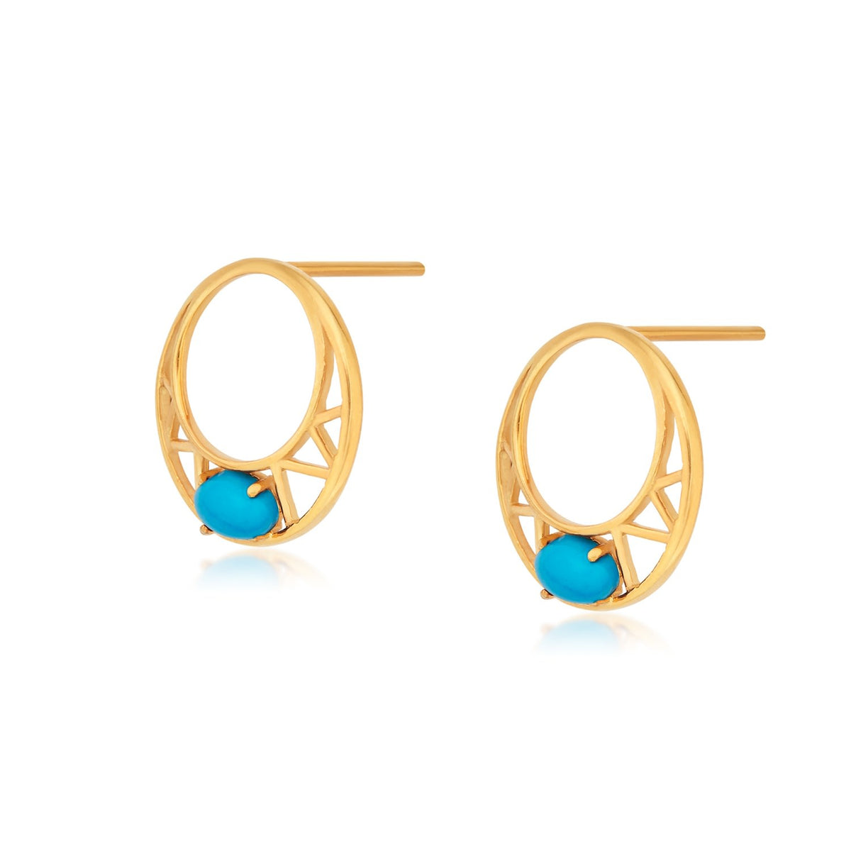 These hoops are 18k gold-plated sterling silver, nickel-free, with a minimum of 2-micron plating and a post-back fastening. They are set with natural turquoise.