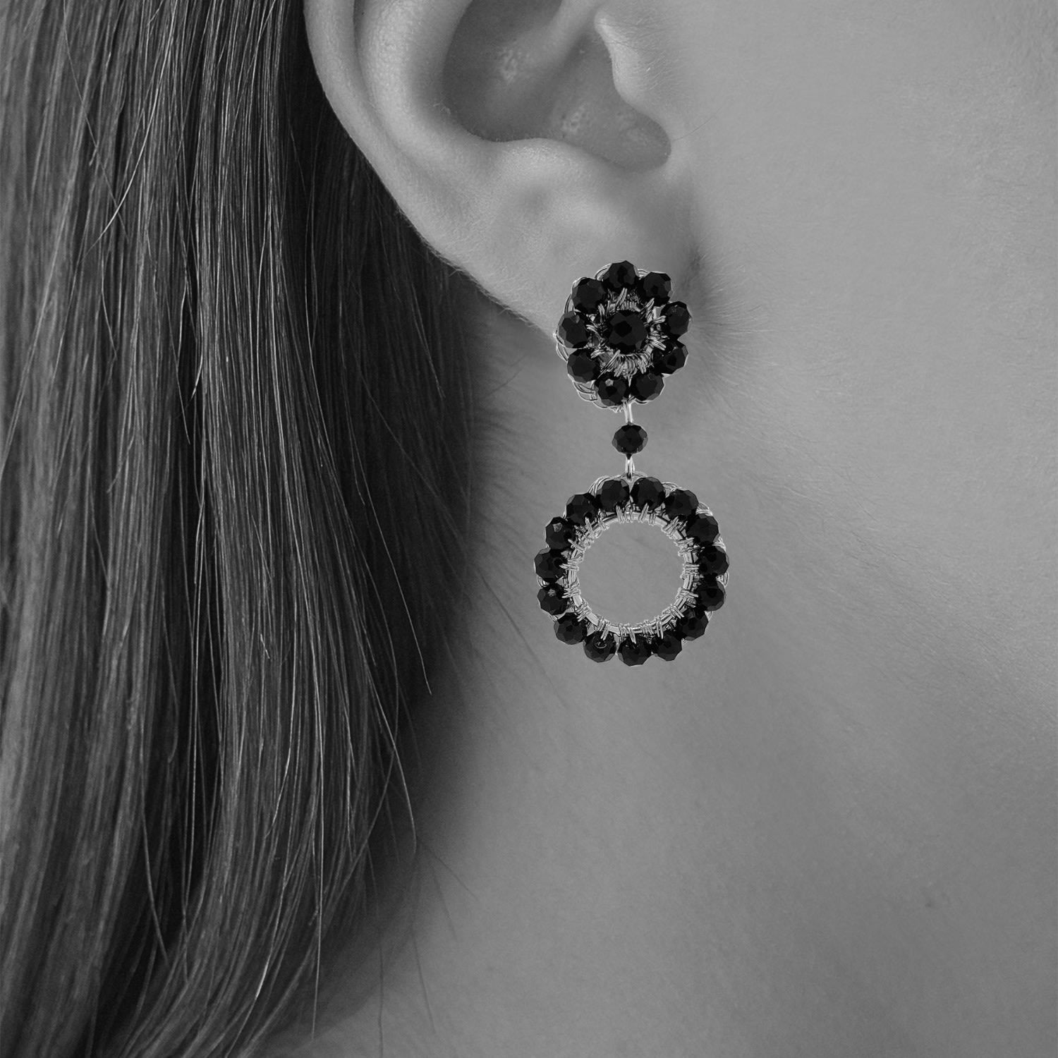 Black & Gold Leah Mini Handmade Crochet Earrings