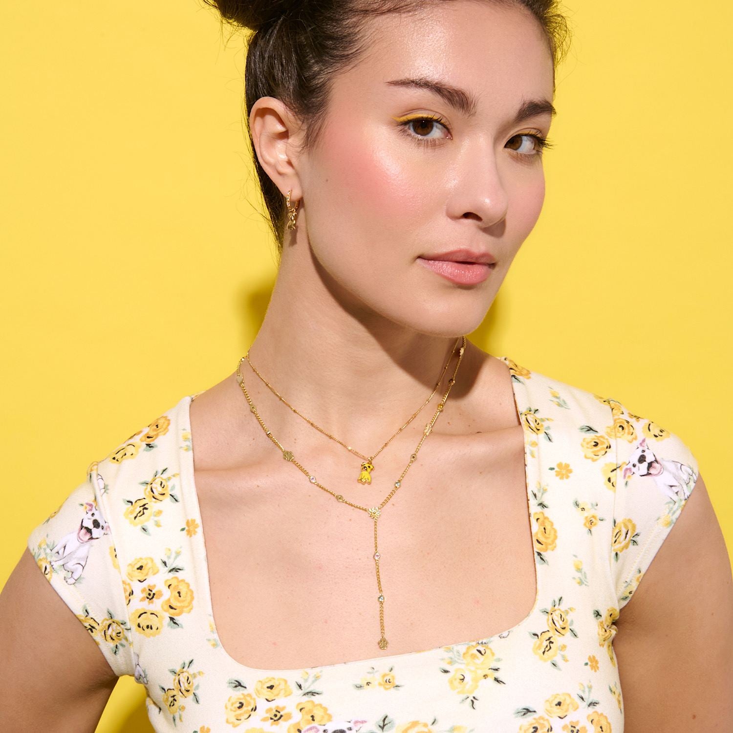 24k gold-plated pendant with limited edition enamel, beaded chain, lobster clasp, 15" length with 3" extender.