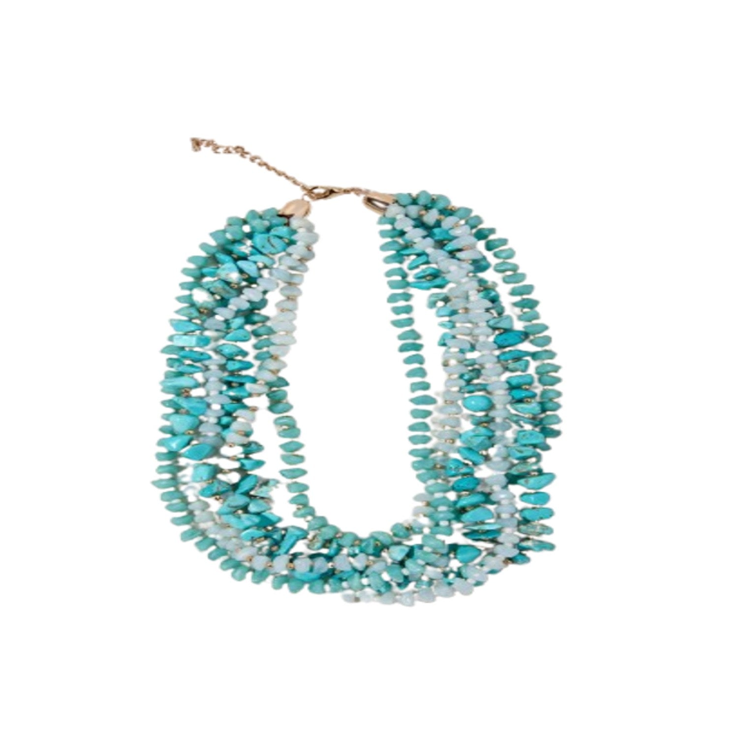 This Turquoise Beaded Multi Necklace by Saachi is a beautiful accessory that stands as a testament to timeless beauty. The harmonious ensemble of genuine turquoise stones and delicate beads creates a striking collar necklace that rests gracefully at the collarbone. It's a versatile piece that adds a touch of refined glamour to any look, whether you're at a festival or simply elevating your everyday wear.