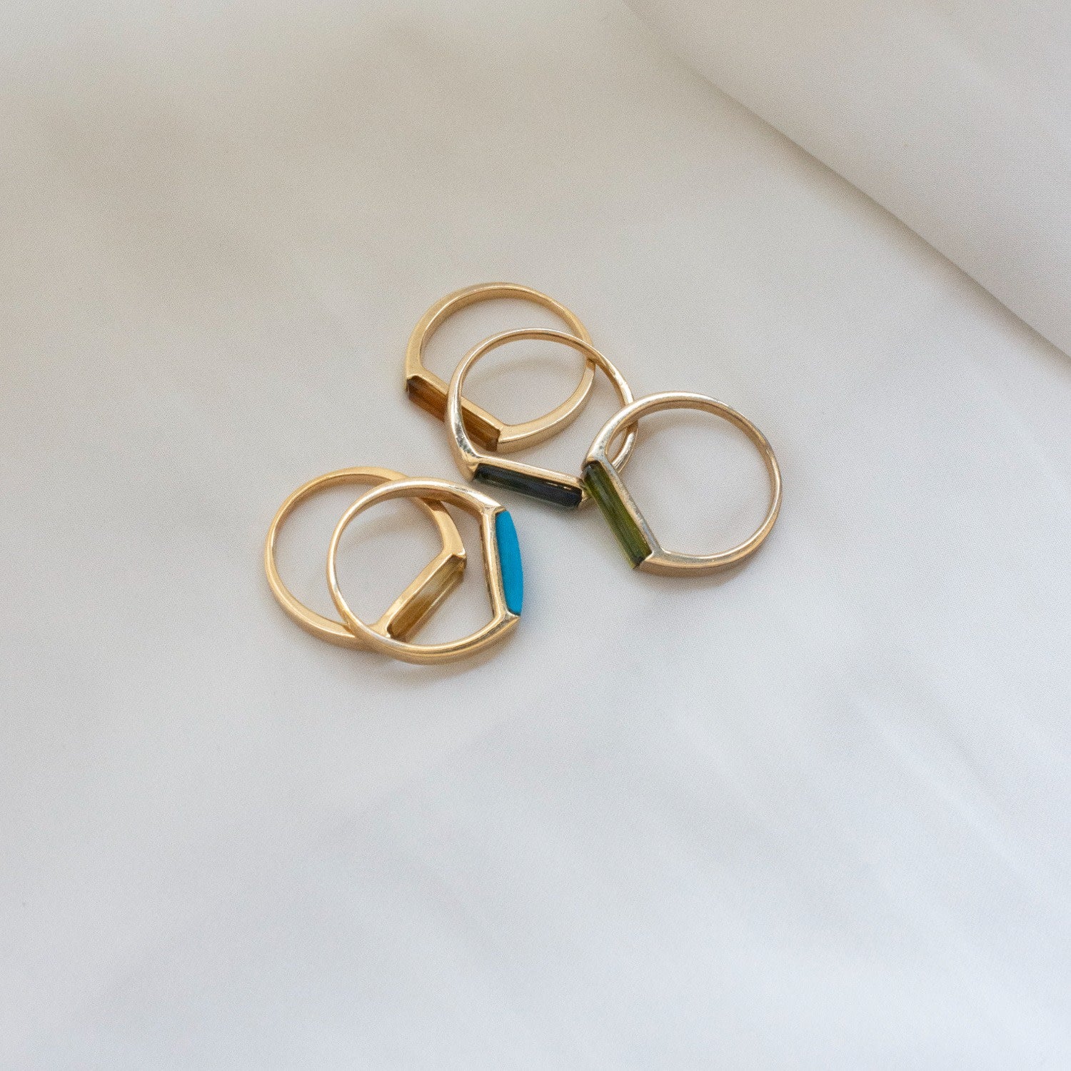 14K Gold Plated Slim Stacking Ring - Blue & Gold