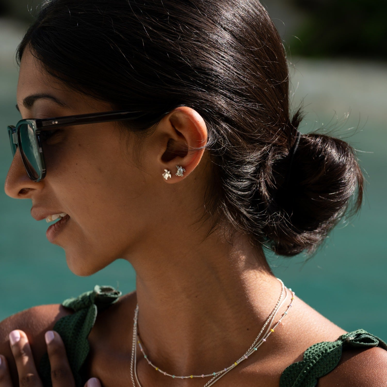 These Sterling Silver Turtle Stud Earrings by Lily Charmed bring coastal charm to your jewelry box. Detailed shells and beaks create lifelike miniature turtles, a joyful nod to the ocean and summer adventures. Both playful and refined, they are everyday studs that celebrate nature’s beauty.
