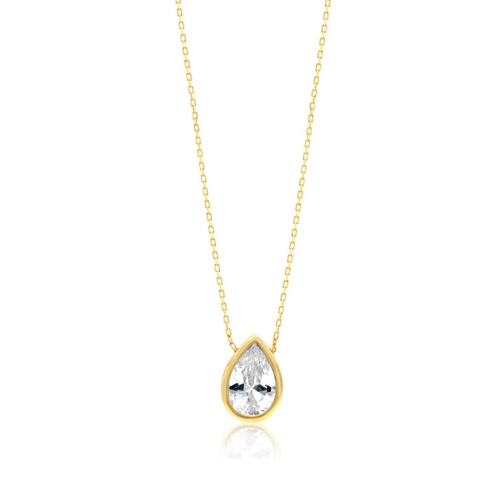 Bezel-Set Solitaire Necklace - Pear Gold & White