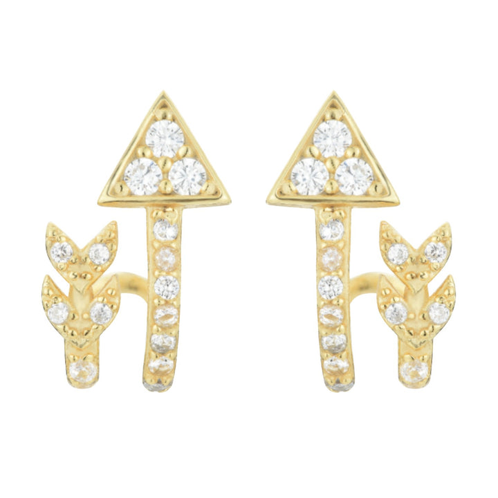 The Arrow Huggie Earrings With Crystals - Gold by Kamaria are a cool, hip, and modern accessory. These huggie earrings feature crystal accents and an arrow design, which serves as a reminder to always look forward. They are gold-plated over sterling silver. Every sale supports survivors of campus sexual assault. They can be worn alone or layered with other studs.