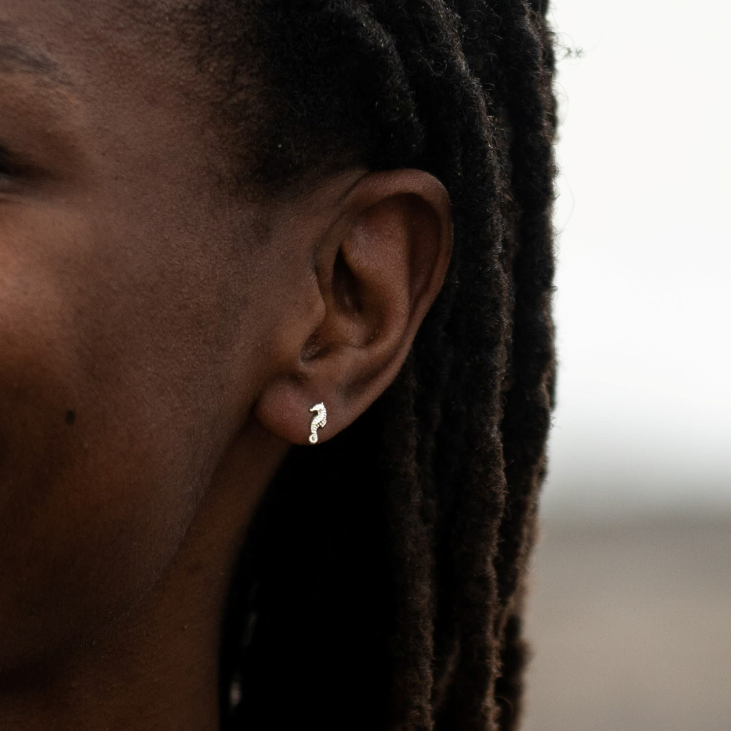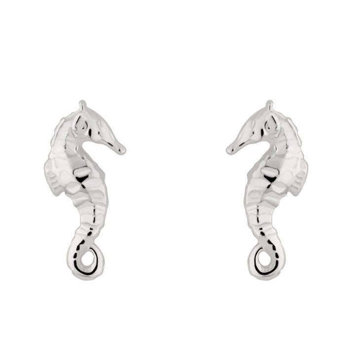These stud earrings are crafted from Recycled 925 Sterling Silver. They feature a seahorse design.