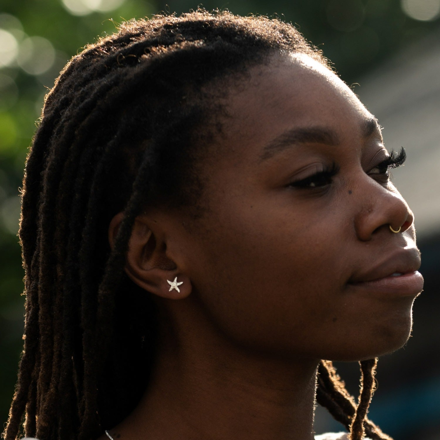 These stud earrings are made from recycled 925 sterling silver. They feature a starfish design and are a single pair.