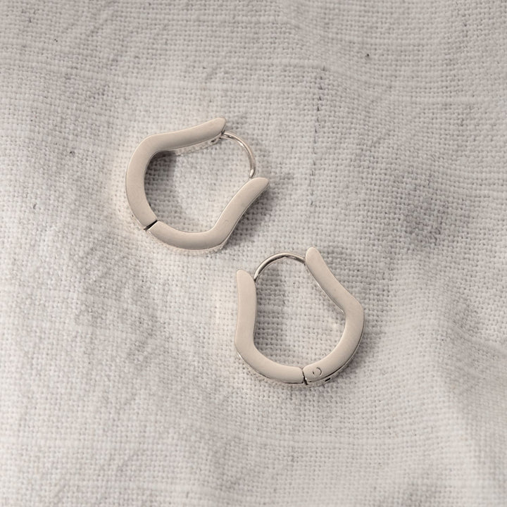 These Silver Juno Hoops by A Weathered Penny are a perfect blend of modern and abstract design, offering a unique and sophisticated twist on a classic hoop. Their clean, architectural lines make them a go-to piece for everyday wear. They are a versatile foundation for any ear stack and can be easily paired with other hoops for a layered look.