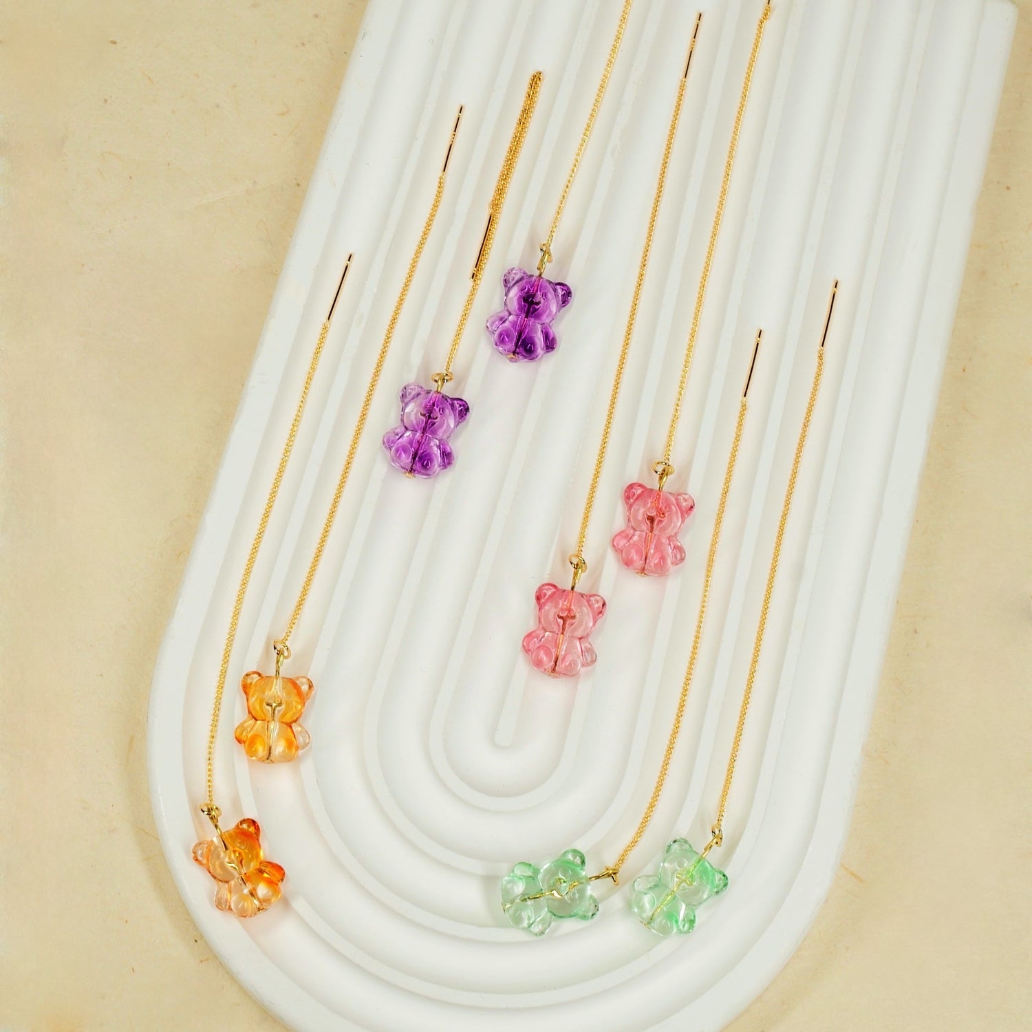 These Crystal Bear Threader Earrings by Ninemoo bring a blend of playful charm and subtle sophistication to your look. They feature a delicate crystal bear pendant, offering a touch of whimsy. These threader earrings are versatile for any occasion and can be paired with matching pieces to create a coordinated set. They are an ideal accessory for those who want to express their personality with a piece that is both cute and elegant.