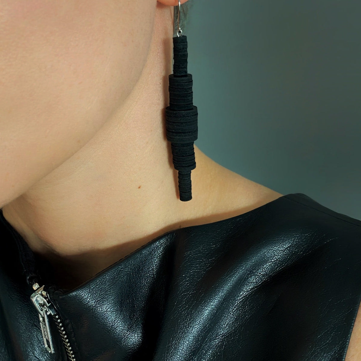 These Gradient Dangle Earrings by Waiwai embody a minimalist’s modern elegance with artistic flair. Designed with stacked genuine leather sequins, they move fluidly and add striking dimension, elongating the neckline. Their featherlight design allows for comfort, while the soft swing creates a sense of freedom and individuality. A contemporary statement piece, these earrings reflect Waiwai’s eco-conscious ethos and commitment to beauty with purpose.