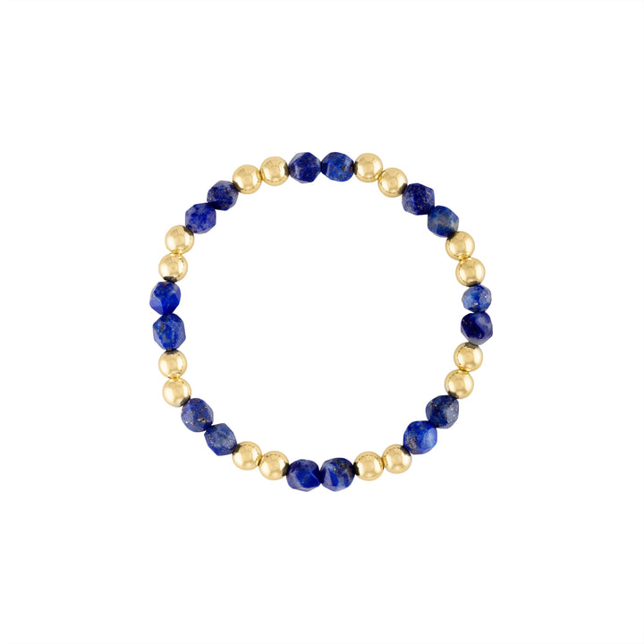 This bracelet is handmade with 14K gold-filled 5mm beads and 5mm Lapis Lazuli diamond-cut star gemstones. It is available in a 6.5" stretch fit.