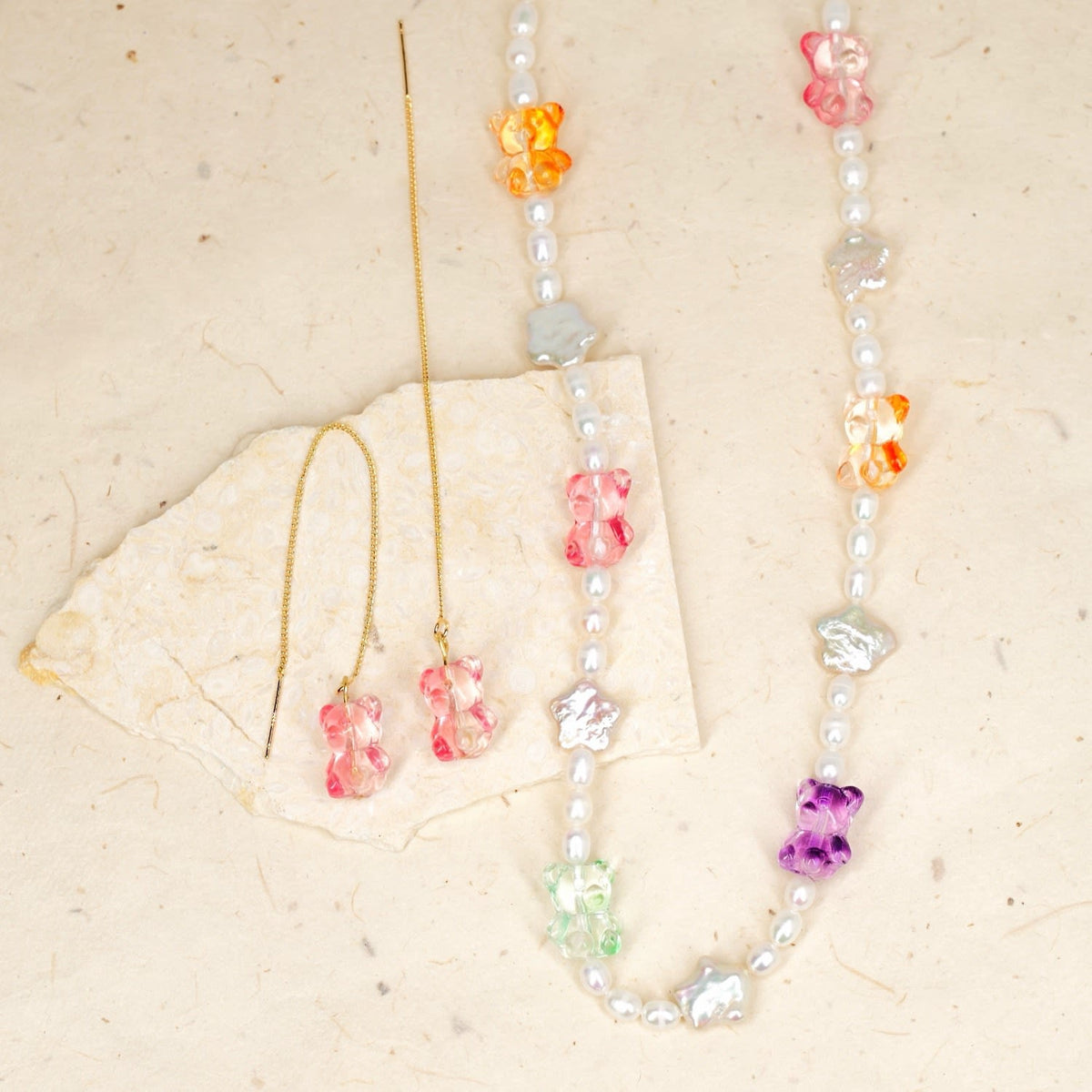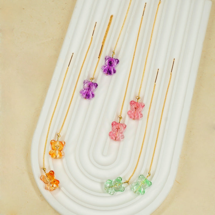 These Crystal Bear Threader Earrings by Ninemoo bring a blend of charm and sophistication to any look. They feature whimsical bear pendants made of glass and are a playful yet stylish addition to your accessory lineup. The threader design and coordinating materials make them versatile and perfect for creating a coordinated set with matching pieces.