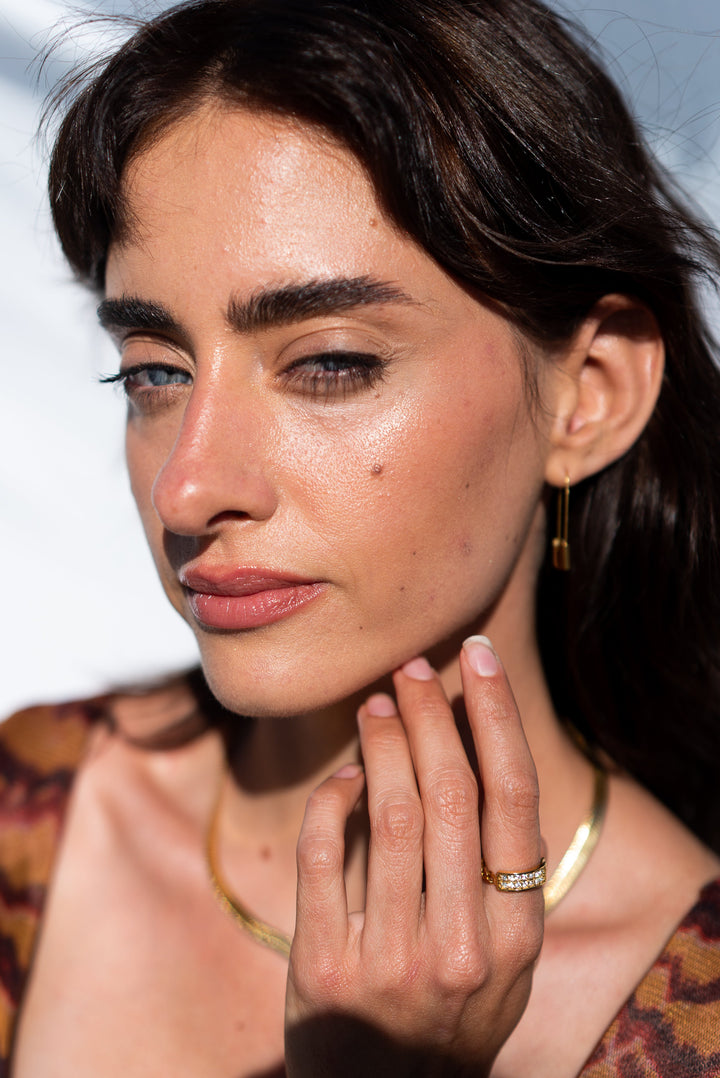 Crafted from 18k gold-plated stainless steel with a small crystal, this ring is a durable and radiant accessory.