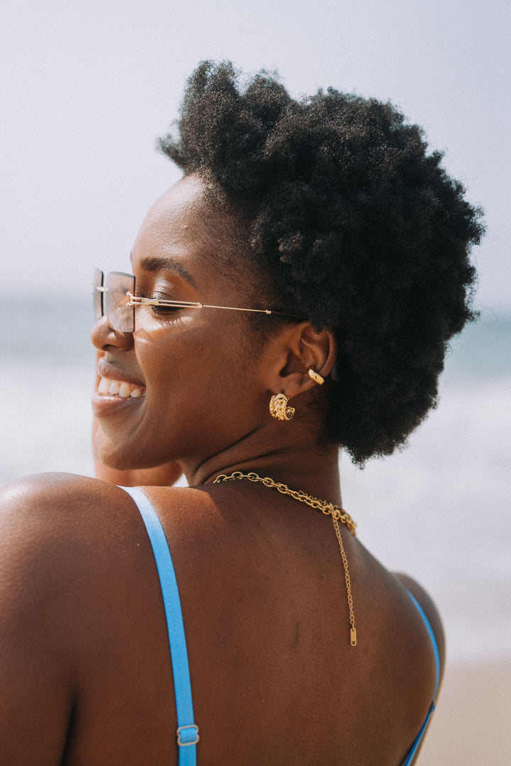 These Capri Hoop Earrings by Tseatjewelry are a sweet and simple accessory that will instantly elevate your vacation look. Made from 18k gold-plated stainless steel, these hoops are perfect for a day at the beach or a happy hour by the pool.