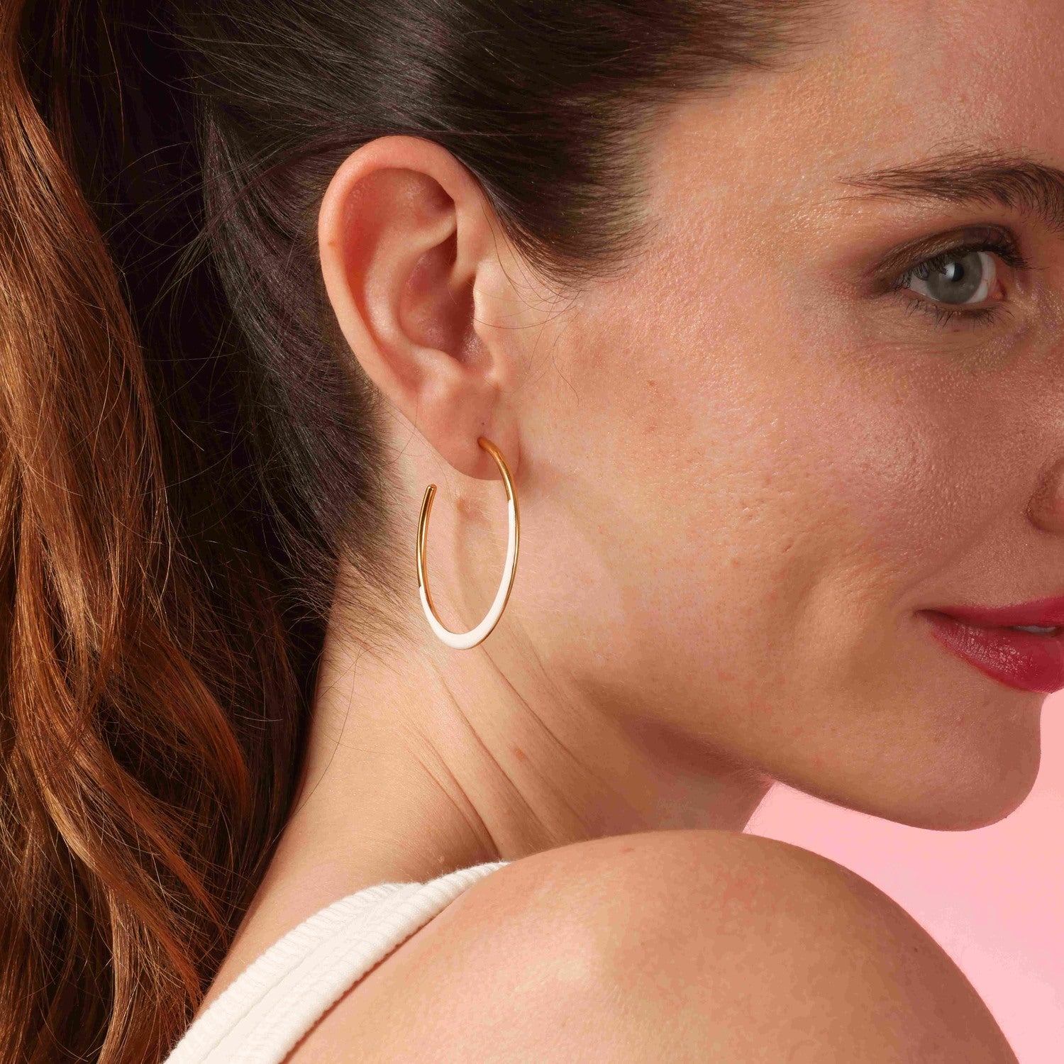 Gold And White Enamel Hoop Earrings