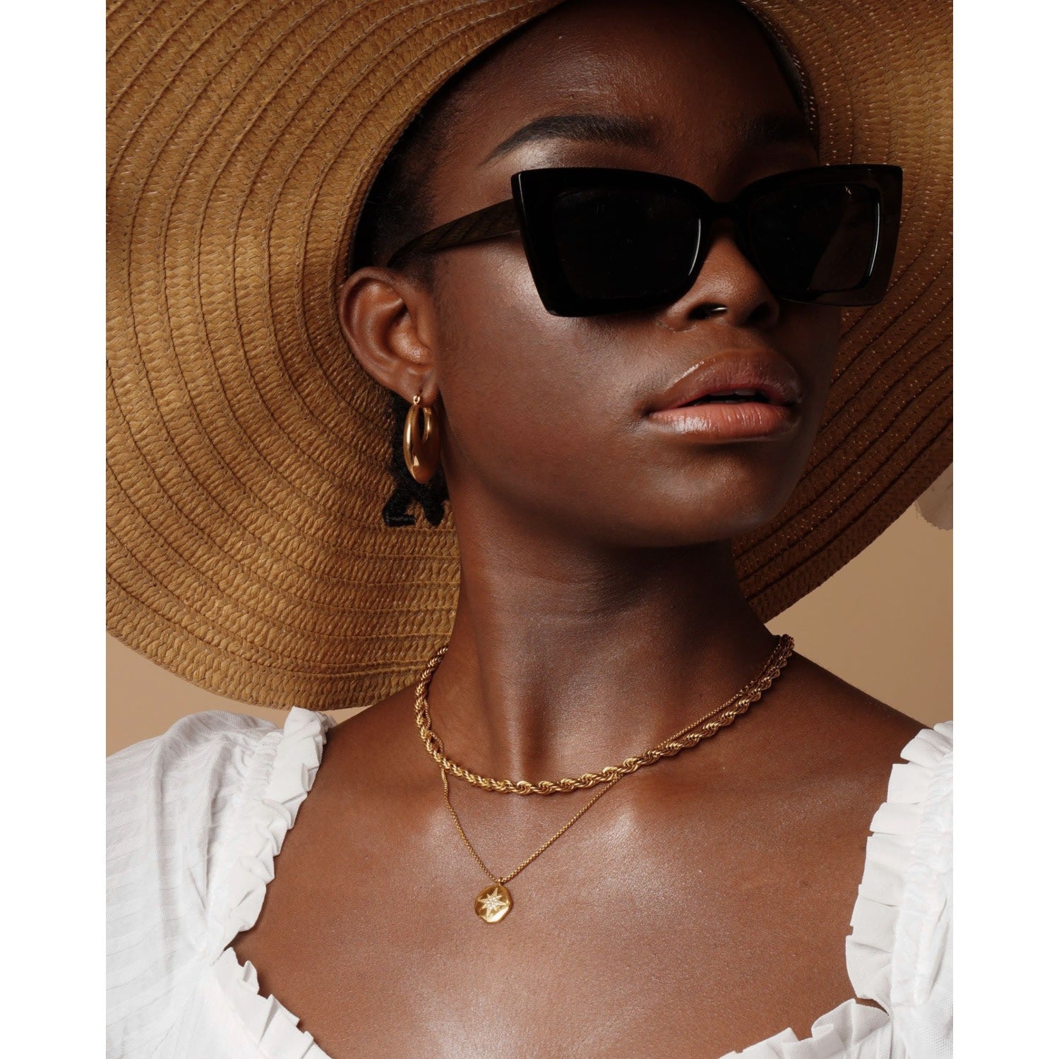 This Fiona Rope Chain Necklace by Viea is a fashion-forward essential that brings modern elegance to your everyday style. Its twisted rope design adds subtle texture and sophistication, making it a versatile piece for layering or wearing alone. The adjustable length ensures a perfect fit, while its polished gold finish evokes timeless glamour. Pair it with coordinating Fiona pieces or layer with contrasting necklaces for a bold, contemporary look.