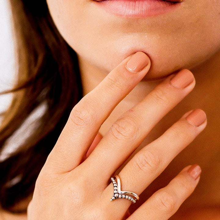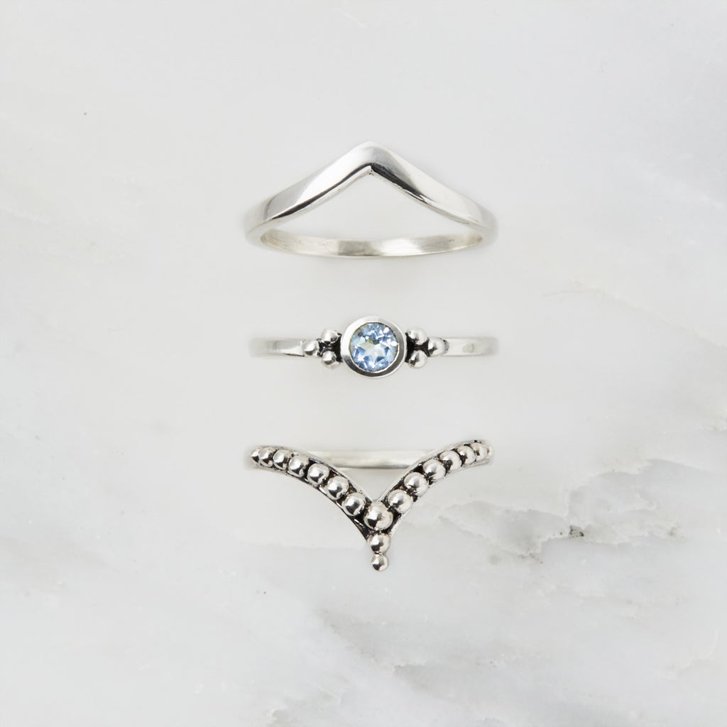 This Raja Silver Stacking Ring by Charlotte's Web Jewellery is a special addition to any collection, crafted to create a truly unique and stylish look. Its eye-catching design is ideal for wearing alone as a singular statement piece or for getting creative by stacking it with other rings for a layered aesthetic. The overall vibe is bohemian and chic, allowing for endless combinations to express your signature style. Handcrafted with care, this ring is perfect for both daily wear and as a special gift, symbolizing a personal and creative touch.