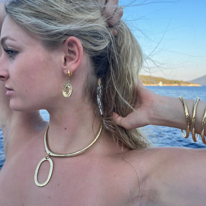 These Eclipse Earrings by Bambaz are a stunning and versatile accessory. Handcrafted from 100% solid brass, each pair is carefully shaped and polished to create a distinctive rippled texture that catches light beautifully. These versatile drop earrings transition effortlessly from office to evening, adding a touch of authentic craftsmanship and elegant style to any outfit.