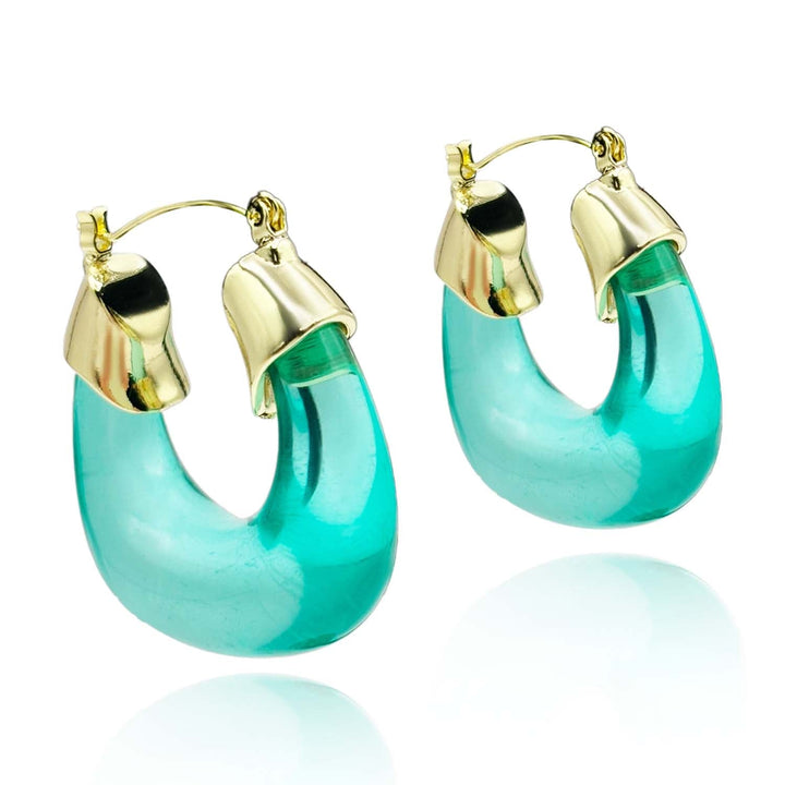 Transparent Teal Blue Resin And Gold Hoop Earrings