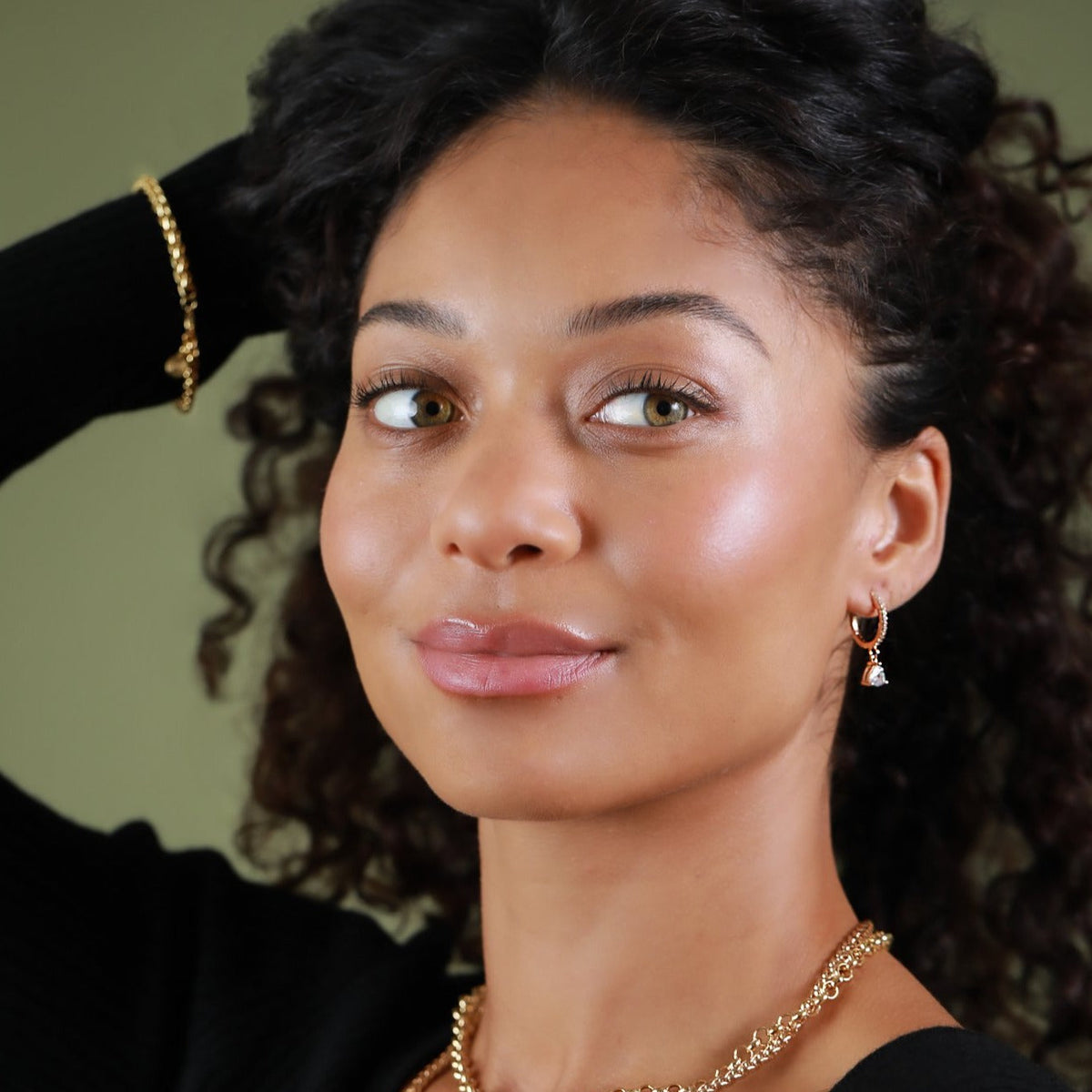 These Lucy Huggie Hoops by Leeada Jewelry are a modern twist on a classic design, offering a perfect blend of elegance and sparkle. The cz-filled hoop is paired with a larger, dangling cubic zirconia for that extra "oomph." Whether you're dressing up for a special occasion or keeping it casual for a day out, these hoops are always the right choice, adding a touch of glamorous shine and a playful personality to your look.