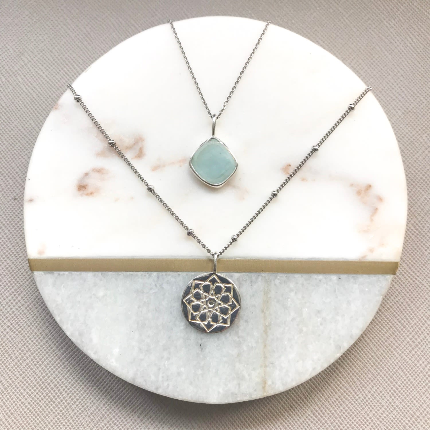 This chain is made of solid sterling silver. It measures 16 inches with a 2-inch extender, allowing it to be worn at 16, 17, or 18 inches.