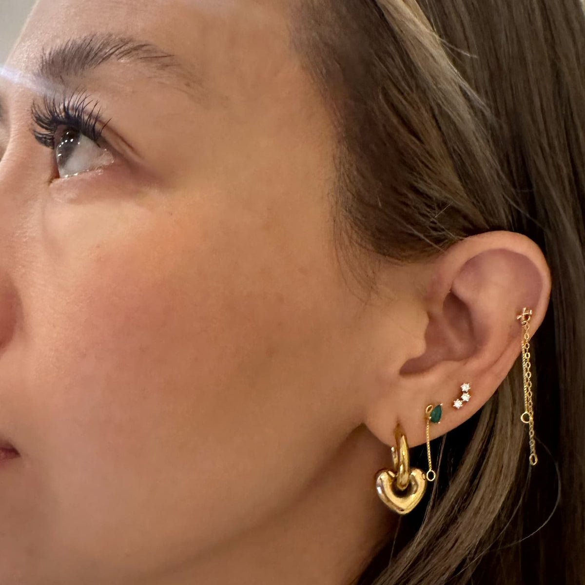 These Puffy Heart Gold Earring Charms by Outofoffice offer ultimate versatility. The detachable heart charm can be worn with the included huggie hoop earrings for a playful accent or removed for a classic look. The charm also doubles as a pendant for a necklace, allowing for endless styling possibilities. Crafted in gold with a polished finish, this piece adds timeless elegance to any collection.