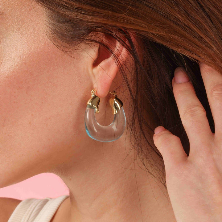 Transparent Aqua Resin And Gold Hoop Earrings