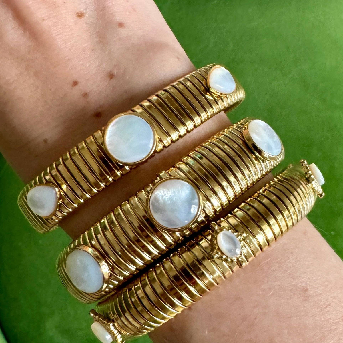 Small Mother Of Pearl Gold Omega Bracelet