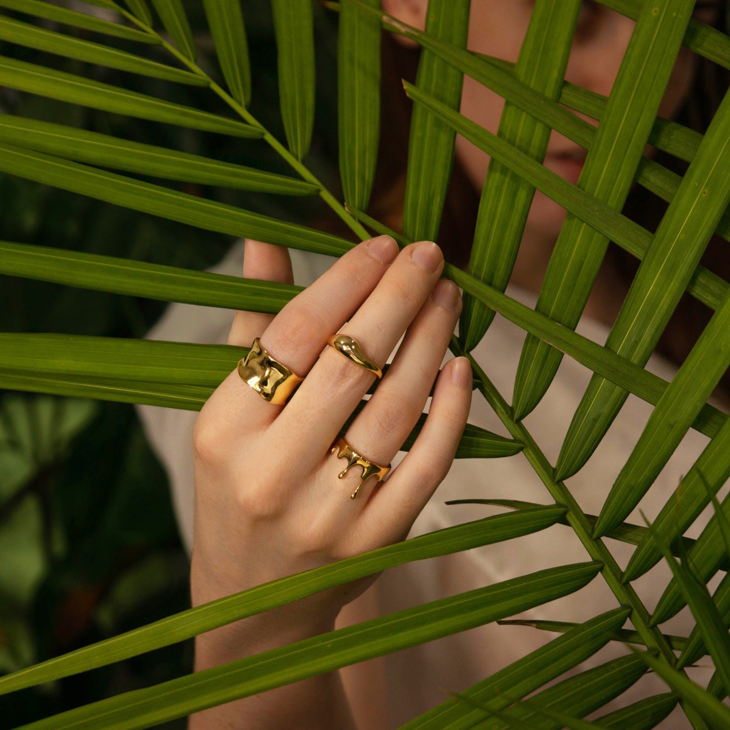 This Dripping Small Sterling Silver Ring by Marie June Jewelry captures the brand’s signature fluid design in a refined, minimalist form. Its sleek dripping-inspired silhouette wraps the finger with quiet sophistication, symbolizing adaptability and flow. A versatile piece meant for everyday wear, it can be styled alone for subtle elegance or paired with other rings for a bold stacked look. A timeless essential for lovers of modern minimal jewelry.
