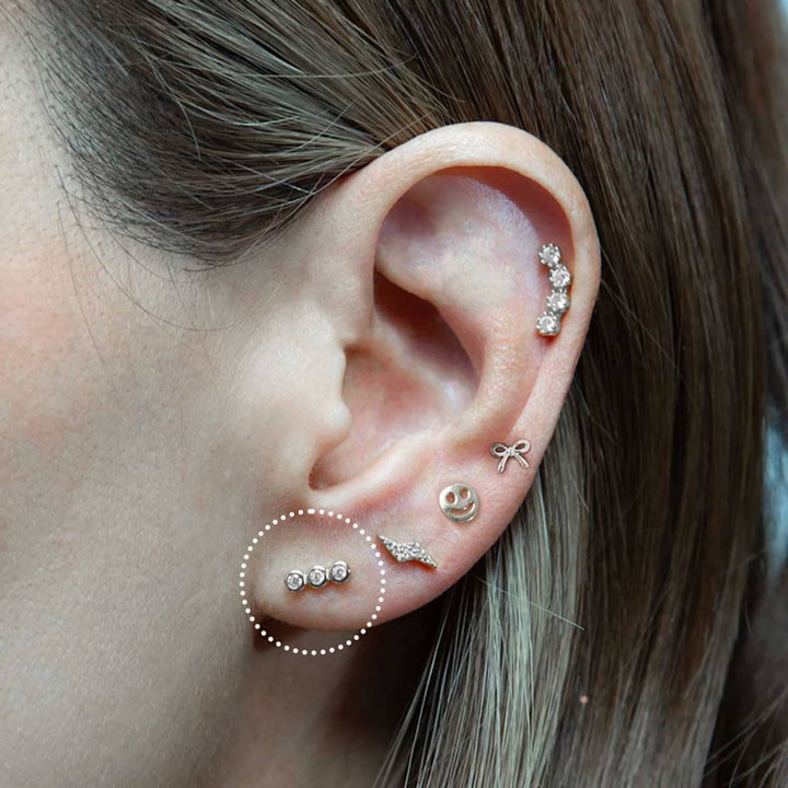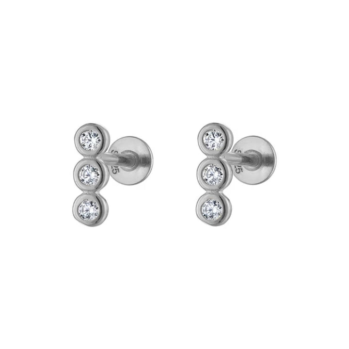 Triple Round Sterling Silver Flatback Pave Earrings Stud