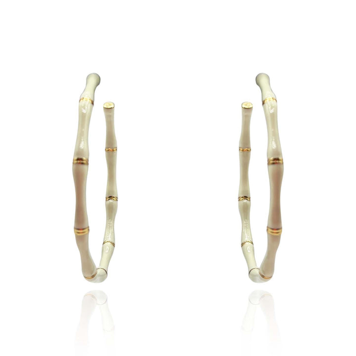 These hoop earrings are made from gold-plated metal with a white enamel finish.