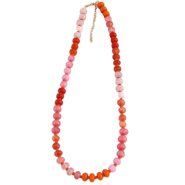 This Beaded Love Necklace - Brights by Macrae & Co is a vibrant and cheerful piece designed to spread joy and positive energy. The natural stone beads in a bright, colorful palette make a playful statement, adding a unique touch of beauty to any outfit. It's a whimsical and personal accessory for those who love to express their unique, free-spirited style.