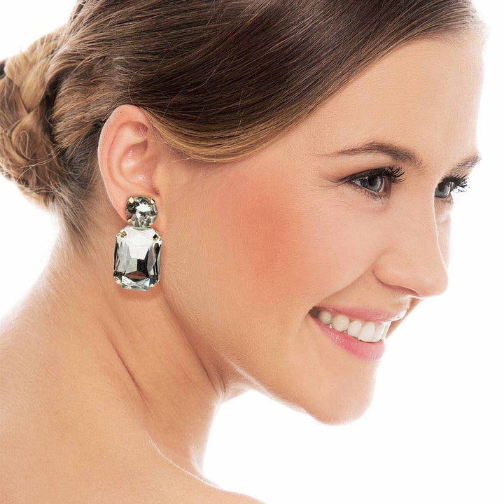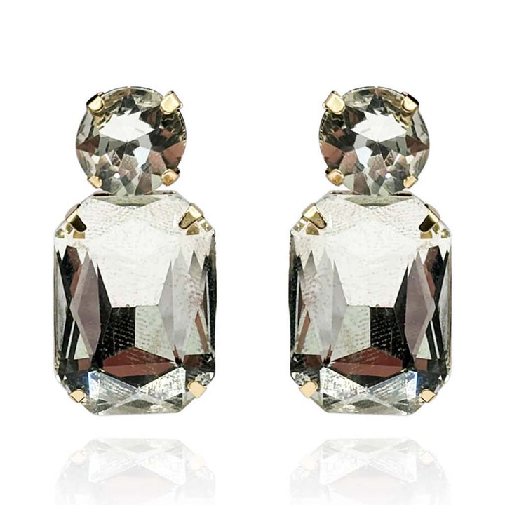Clear Crystal Octagon And Round Stone Drop Earrings