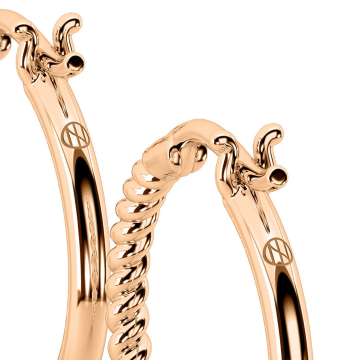 These Braided Everyday O-Hoop - Rose Gold by Oni Fine Jewelry are a blend of classic and innovative design. These hoops feature an intricately woven pattern and are perfect for elevating everyday style or adding a bold touch to a special occasion. They are made of 925 Sterling Silver and 14k Gold Plated, ensuring both quality and style.
