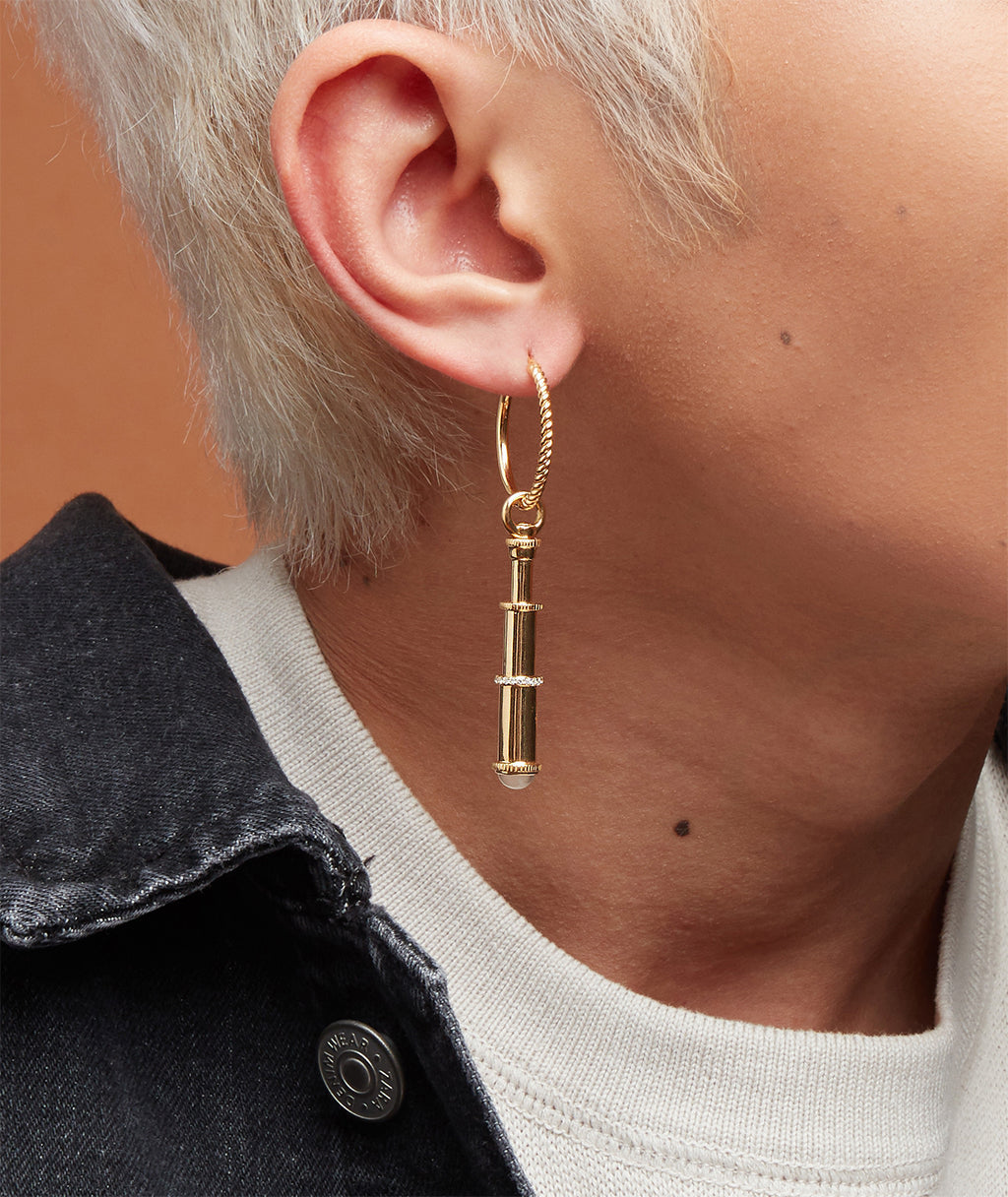 These hoop earrings are made of 925 Sterling Silver and are 14k Gold Plated. They have an intricately braided pattern.