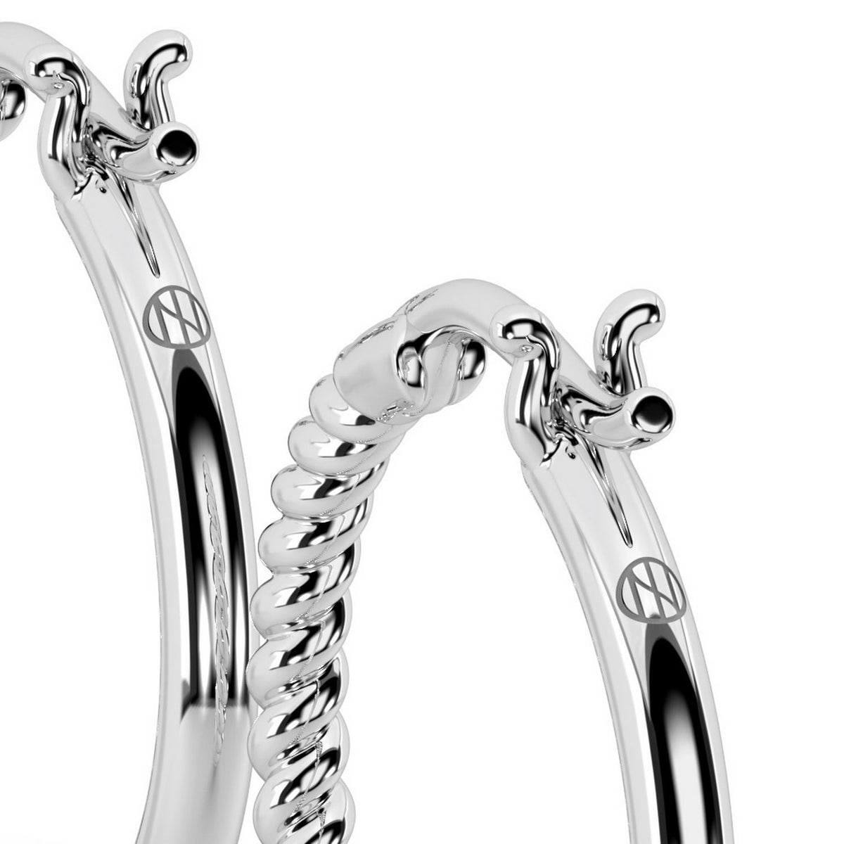 These Braided Everyday O-Hoops by Oni Fine Jewelry are a classic yet innovative accessory. Their intricately woven pattern adds a touch of bold sophistication, making them perfect for elevating any look, from daily wear to special occasions. They can be worn solo for a sleek, understated style or paired with charms for a personalized touch.