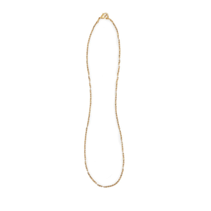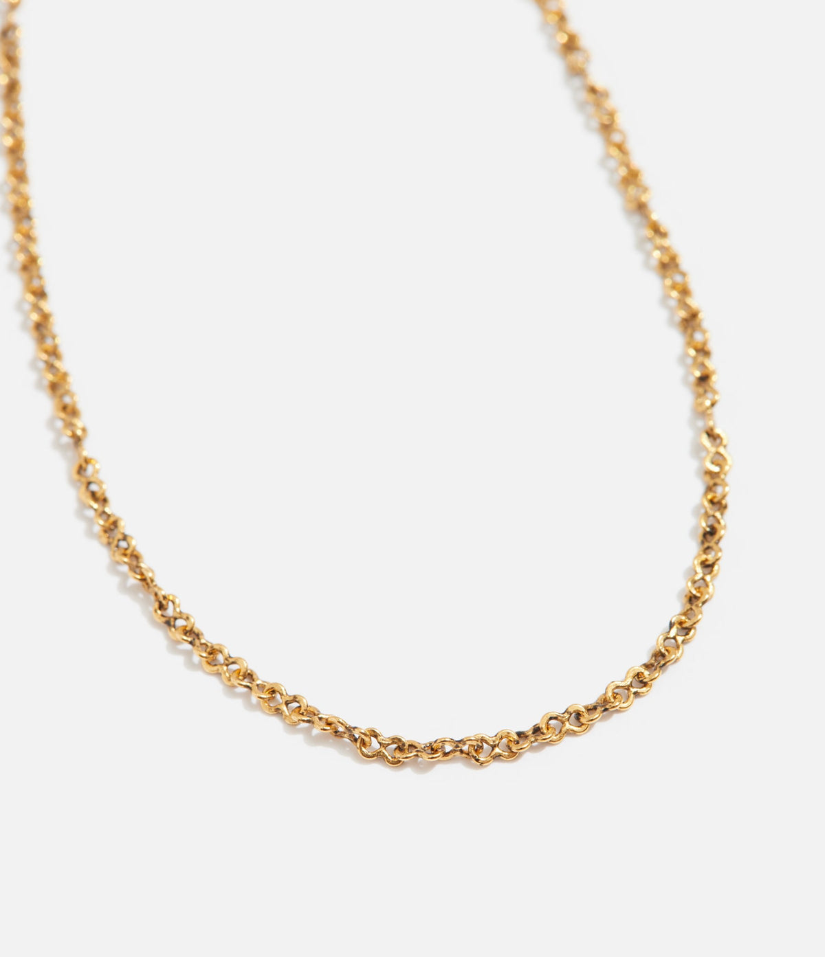 This necklace is crafted from 18k gold plate with textured loops.