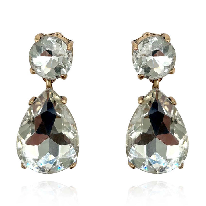 Large Pear-Faceted Crystal Drop Earrings In Brass With Gold Plating