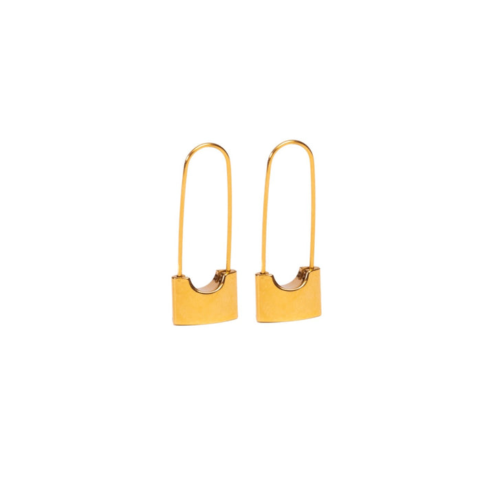 These earrings are crafted from 18K gold-plated stainless steel. They have a lock design.
