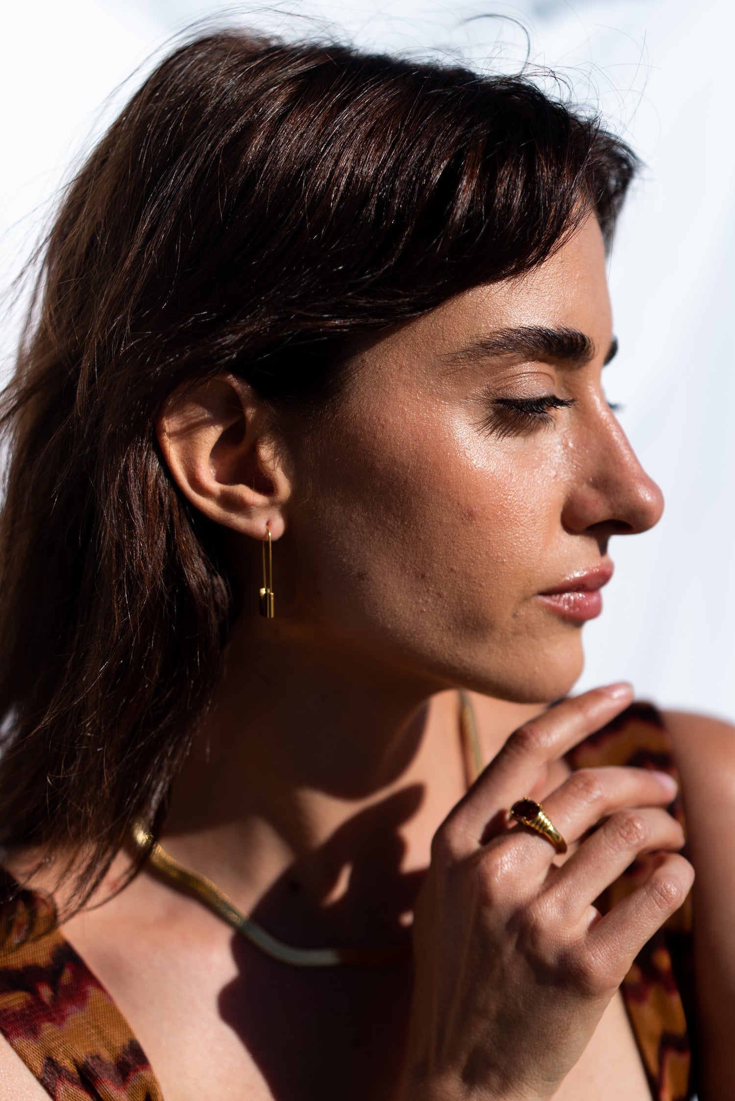 These Lock Earrings by Tseatjewelry are a chic and comfortable accessory that will complete your look. Crafted from 18K gold-plated stainless steel, they offer a perfect blend of style and durability. They are a stylish and versatile accessory that adds a touch of modern elegance to your ensemble.
