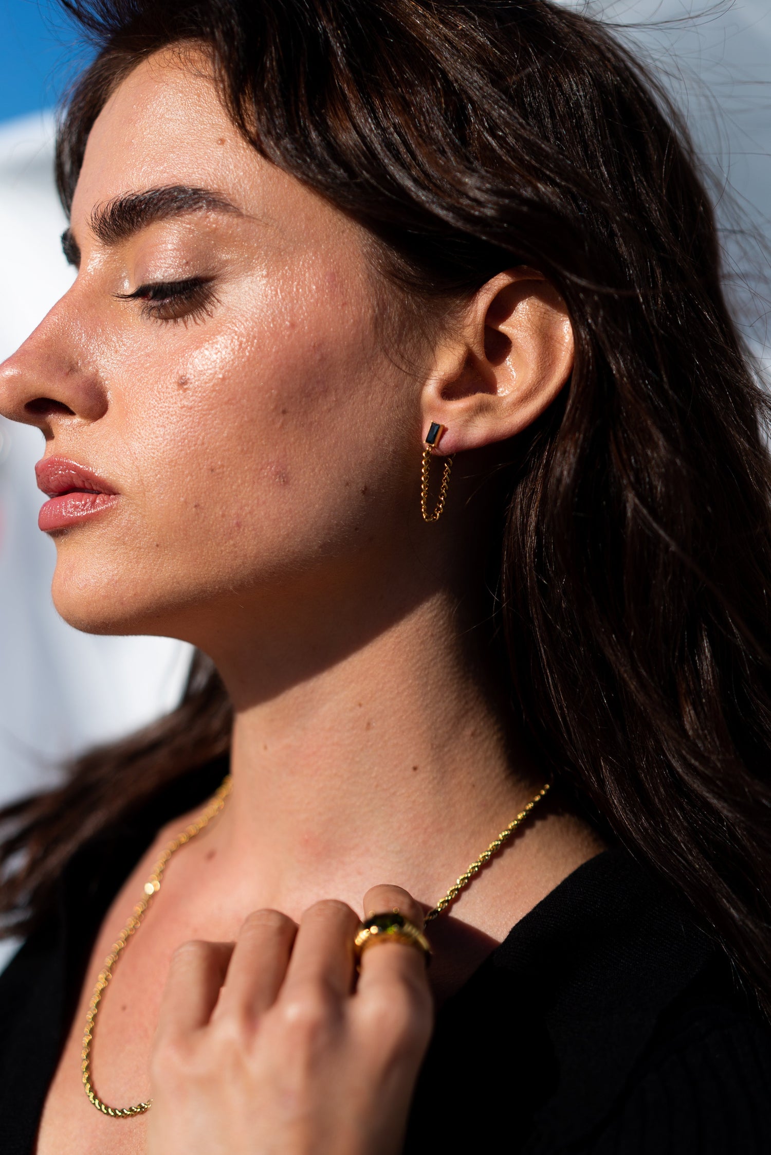 These Cc Earrings by Tseatjewelry are an easy and casual accessory with a chic contrast of gold and black. Their sleek and simple design makes them perfect for everyday wear, adding a touch of sophisticated style to any outfit.