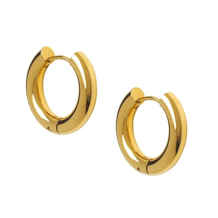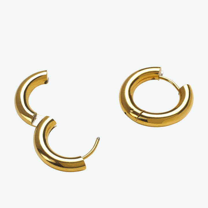 These Stevie Hoops by Hoops + Chains Ldn are cute and perfect for everyday wear. These 18kt gold-plated stainless steel hoops are small, with an 8mm diameter, and are 100% waterproof and tarnish-free with a lifetime color warranty. You can even wear them in the shower!