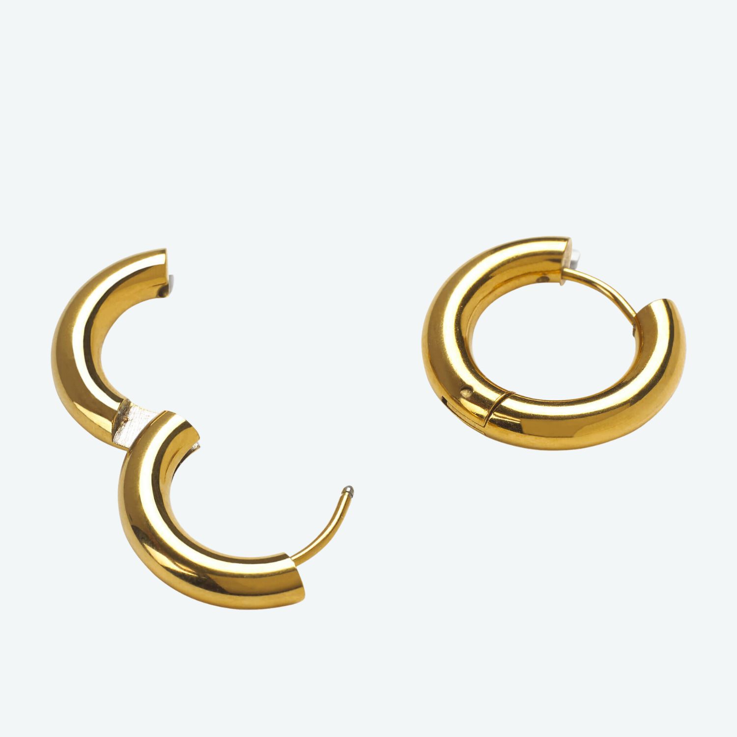 These hoops are 18kt gold-plated stainless steel and are 8mm in diameter.